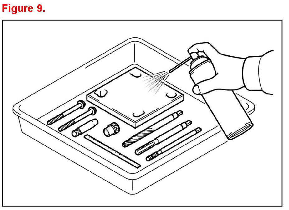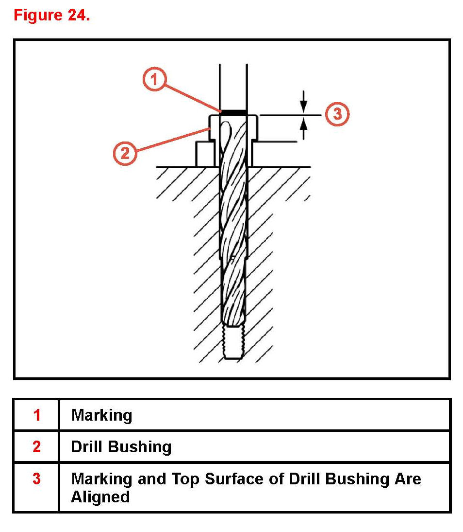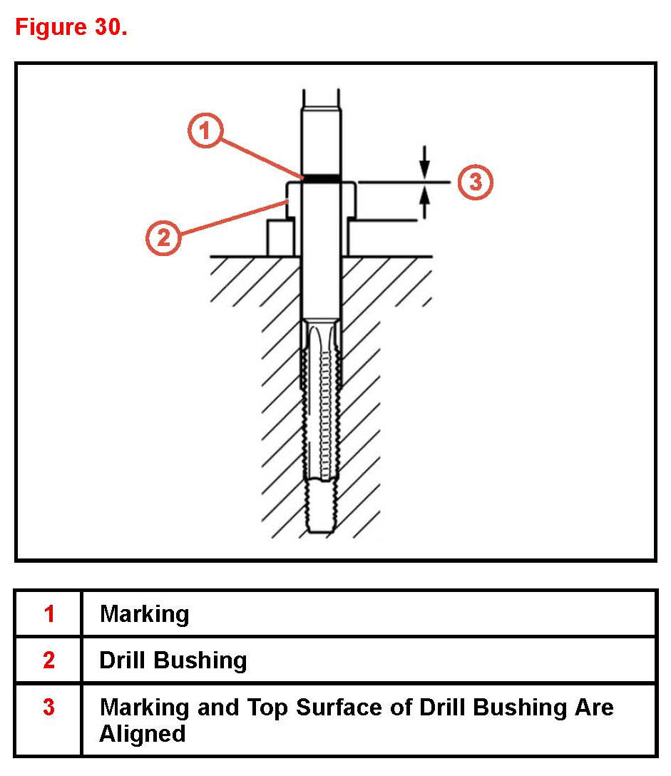 F. Remove the drill bushing and screw the head bolt into the hole by hand to verify that there is no problem with the threads.
