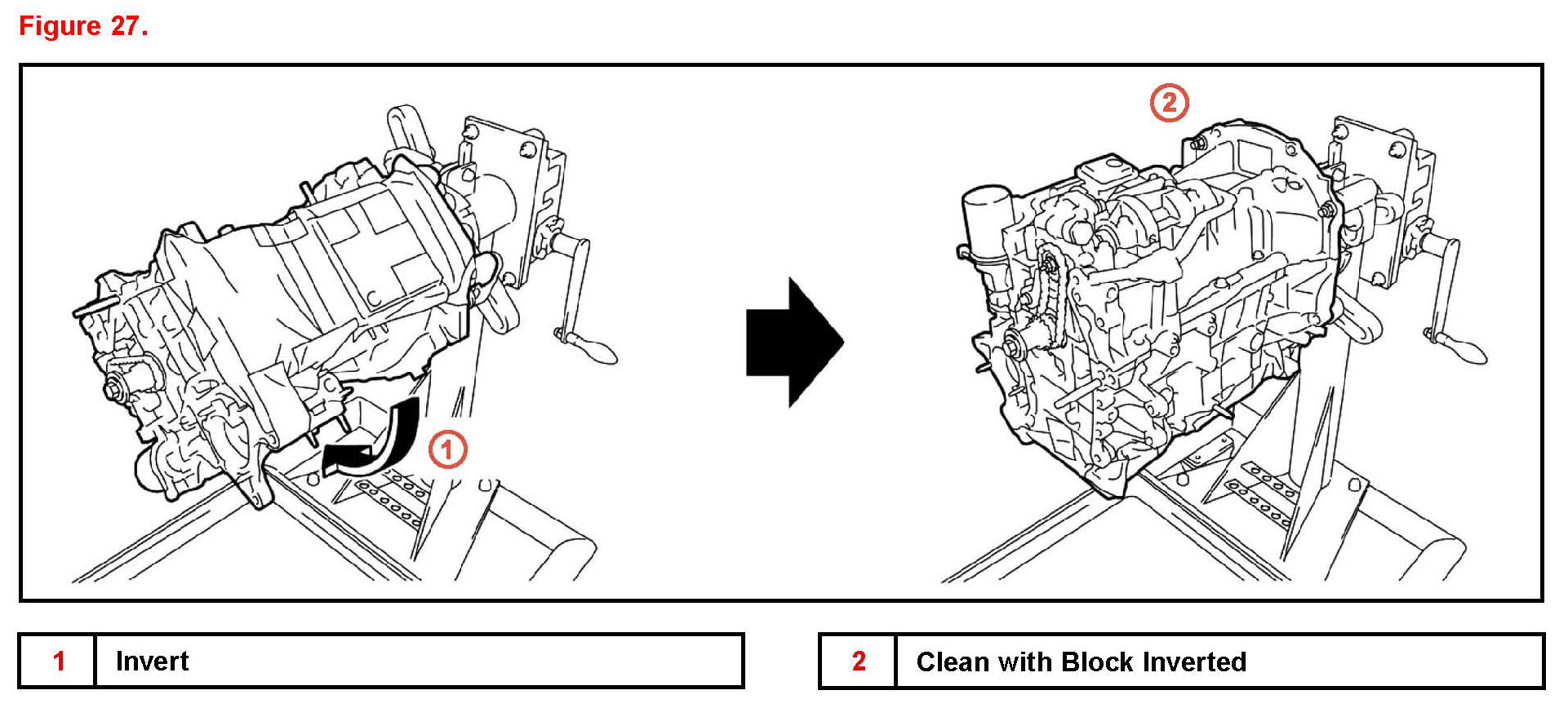 A. Invert the cylinder block so that it is upside-down.