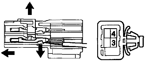 d. Using a small screwdriver, disengage the locking lug of the terminals 3 and 4, and pull the terminals out from the rear.