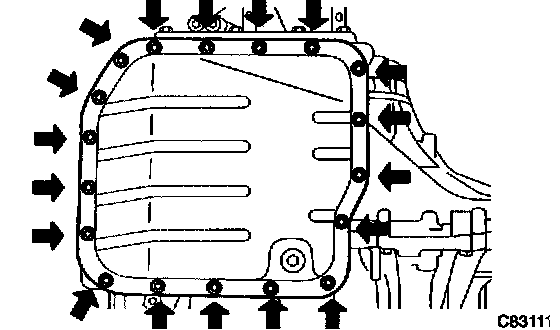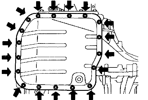 c. Install a new gasket, oil pan and 18 bolts to the transaxle case.