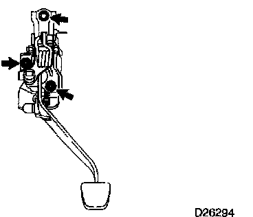 b. Remove the bolt, 2 nuts and clutch pedal assy.