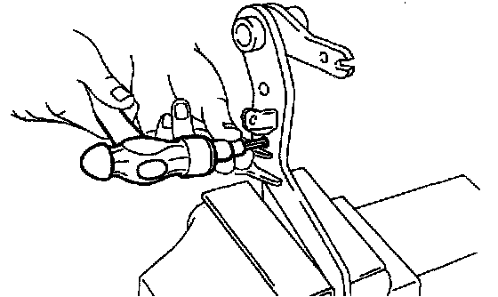 b. Mount the clutch pedal assy in a soft jaw vise.