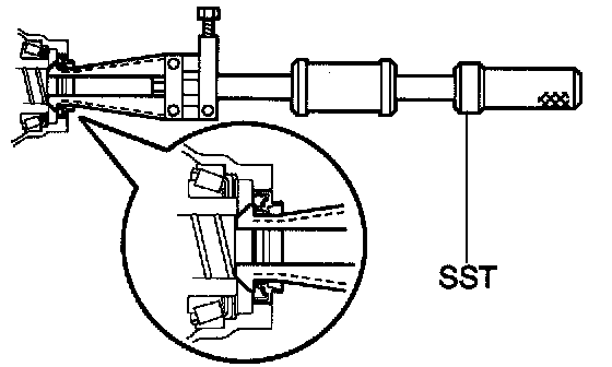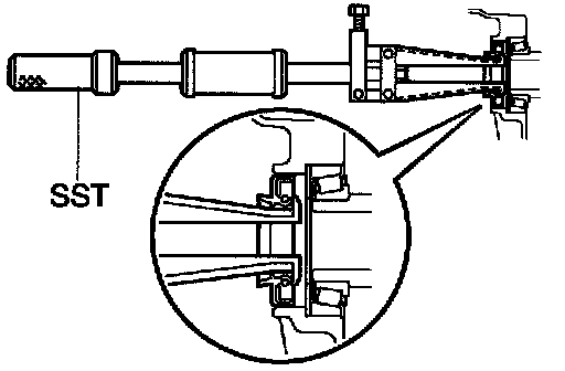 b. Using SST and a hammer, install the oil seal.