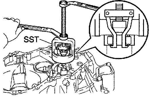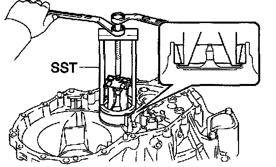 a. Using SST, remove the output shaft rear bearing from the manual transmission case (outer race).