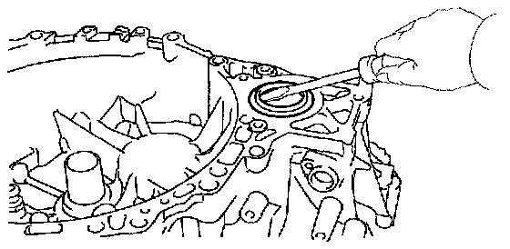 a. Using a screwdriver, remove the front transaxle case cover oil seal.