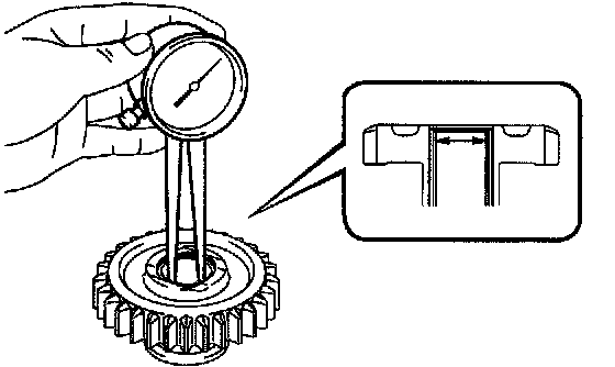 If the inside diameter is exceeds than the maximum, replace the reverse idler gear.