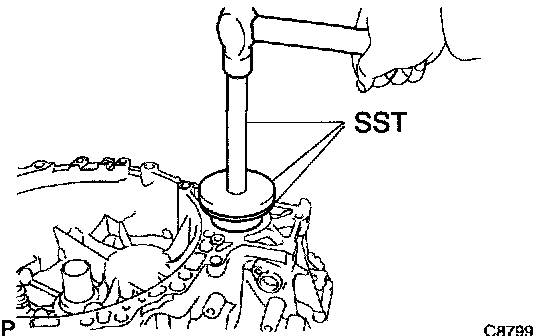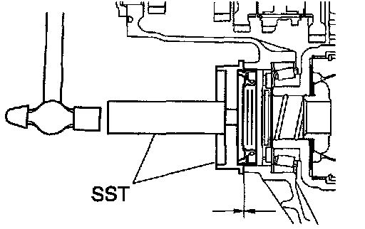a. Using SST, remove the manual transaxle, case oil seal from the manual transaxle case.