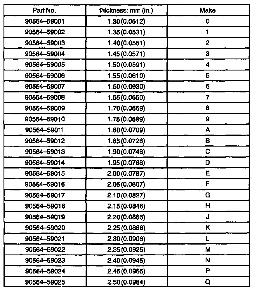 i. If the preload is out of the specification, select the output shaft rear bearing shim and adjust it.