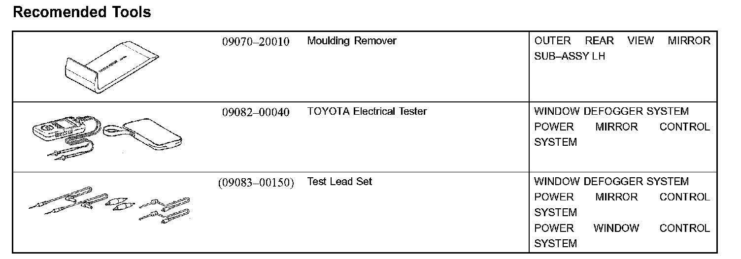 Windshield/Window Glass/Mirror - Recommended Tools: