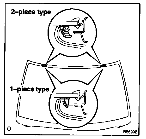 a. Install 2 new windshield glass retainers onto the glass as shown in the illustration.