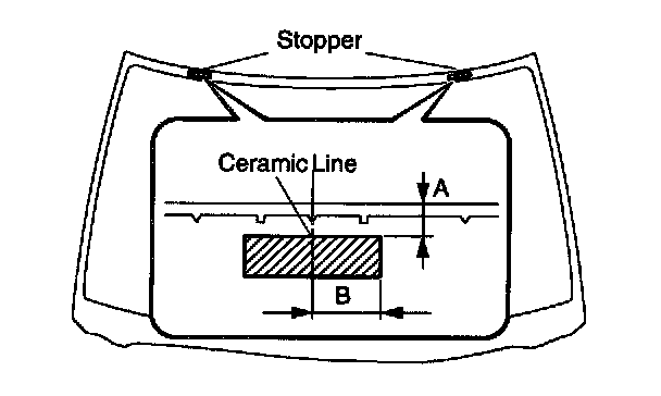 b. Install the 2 new windshield glass stoppers No.2 onto the glass as shown in the illustration.