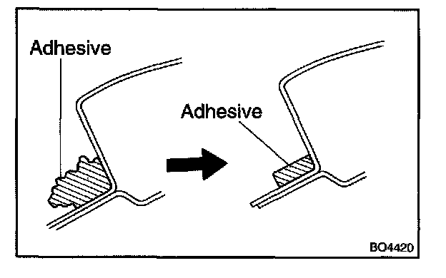 a. Using a scraper, remove the damaged stoppers, dam and adhesive sticking to the glass.