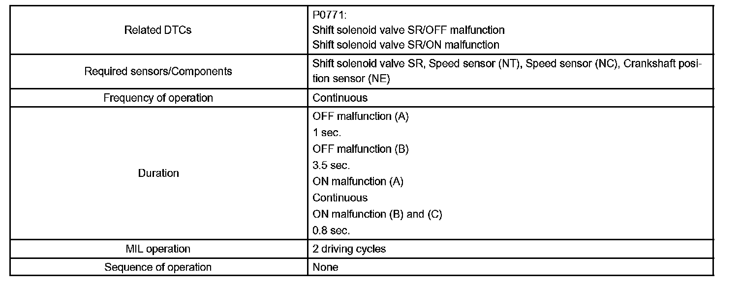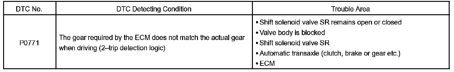 DTC P0771 SHIFT SOLENOID "E" PERFORMANCE (SHIFT SOLENOID VALVE SR)SYSTEM DESCRIPTION