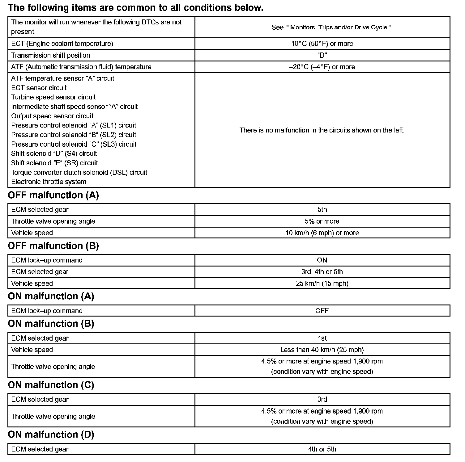 Then the ECM compares the actual gear with the shift schedule in the ECM memory to detect mechanical problems of the shift solenoid valves and valve body.