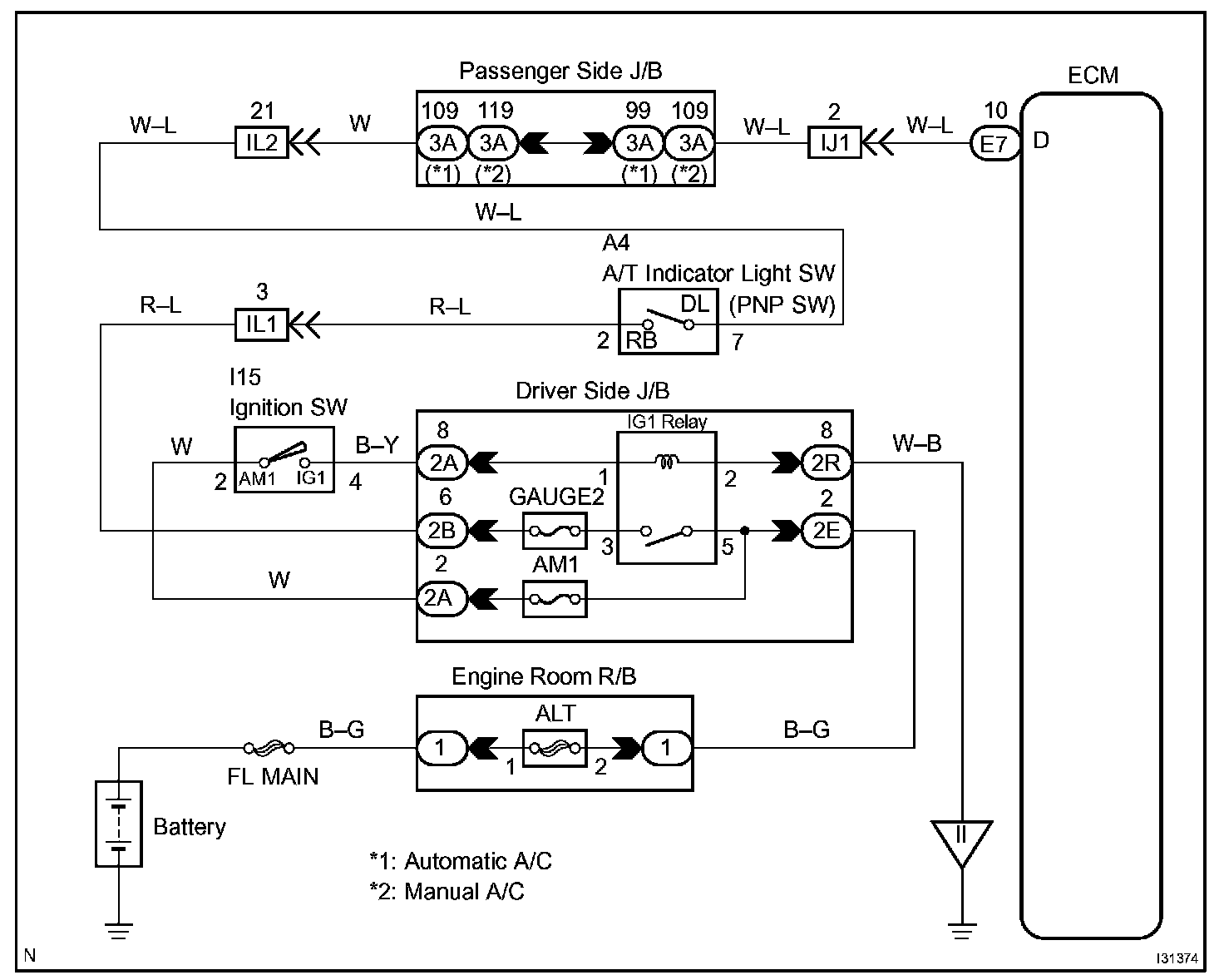 PARK/NEUTRAL POSITION SWITCH CIRCUITCIRCUIT DESCRIPTION