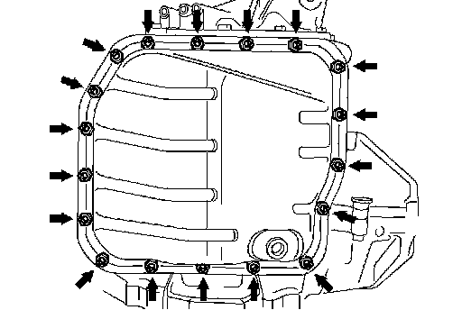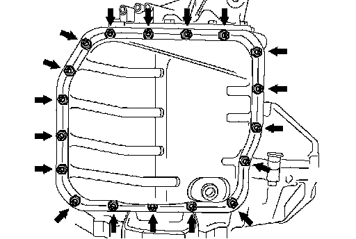 c. Install a new gasket, oil pan and 18 bolts to the transaxle case.