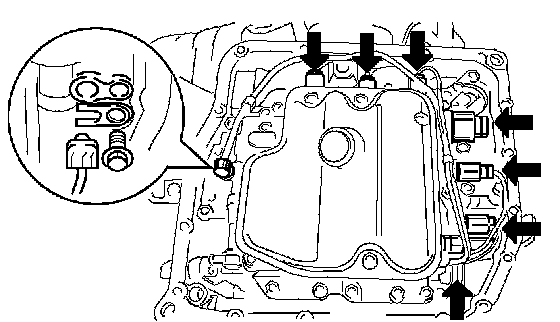a. Disconnect the 7 shift solenoid valve connectors.