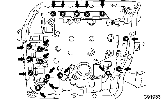 a. Support the valve body assy and remove the 17 bolts and the valve body assy.