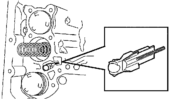 ^ Push the valve body against the accumulator piston spring and the check ball body to install it.