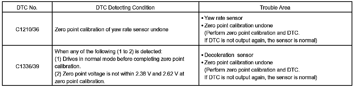 DTC C1336 ZERO POINT CALIBRATION OF DECELERATION SENSOR UNDONE