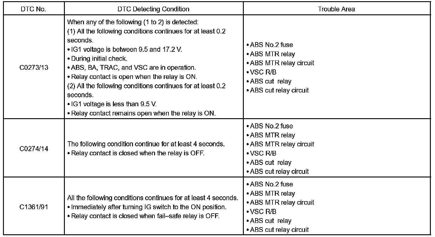 DTC C1361 SHORT CIRCUIT IN ABS MOTOR FAIL SAFE RELAY CIRCUITCIRCUIT DESCRIPTION
