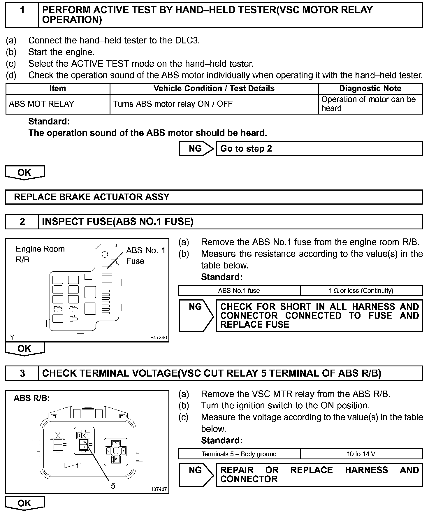 - While any of the ABS, BA, TRAC and VSC is operating, the skid control ECU (included in the actuator) turns the ABS motor relay on to operate the actuator pump motor.
