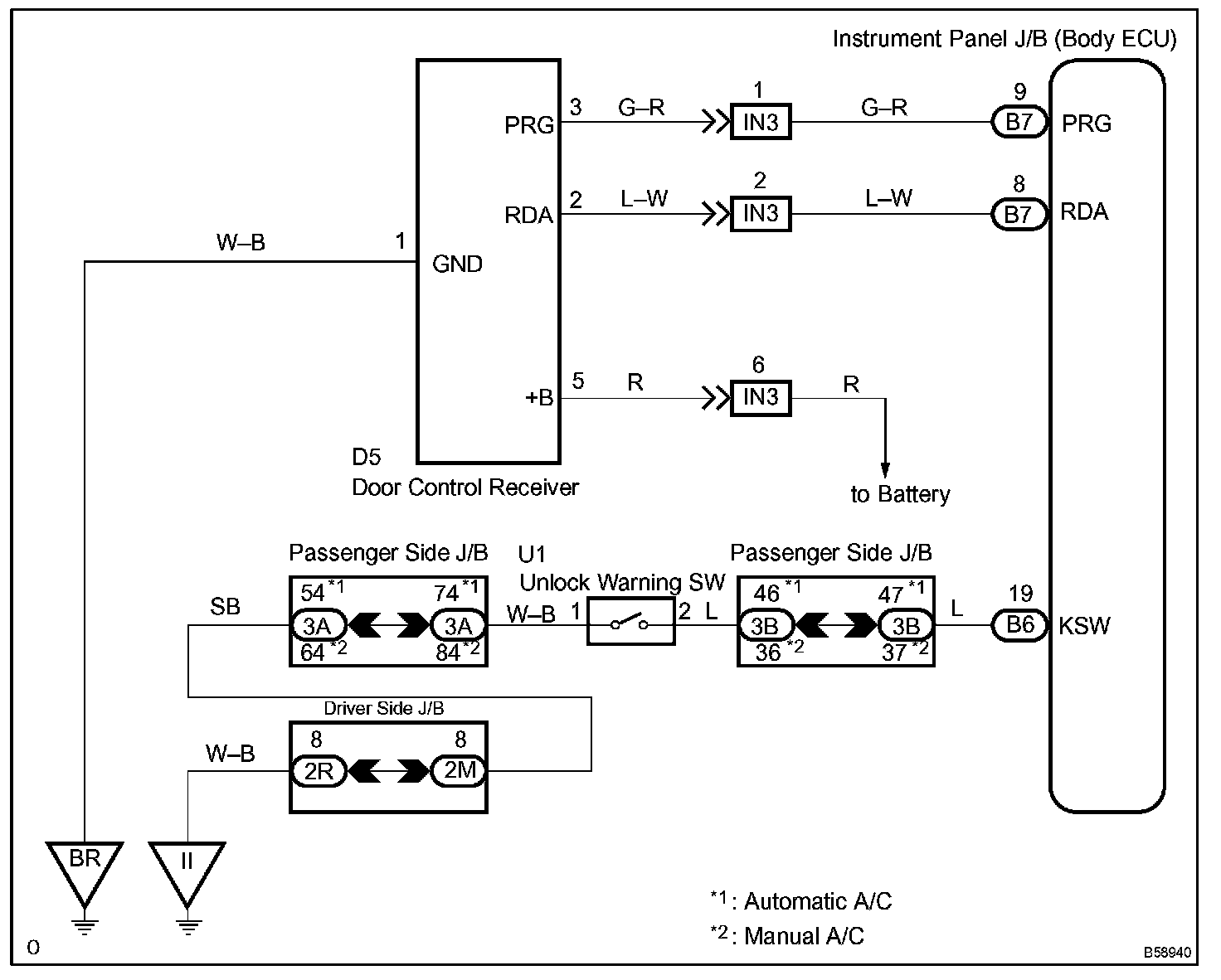 Door control receiver locks doors via the wireless control by receiving or sending input/output signals from the body ECU.