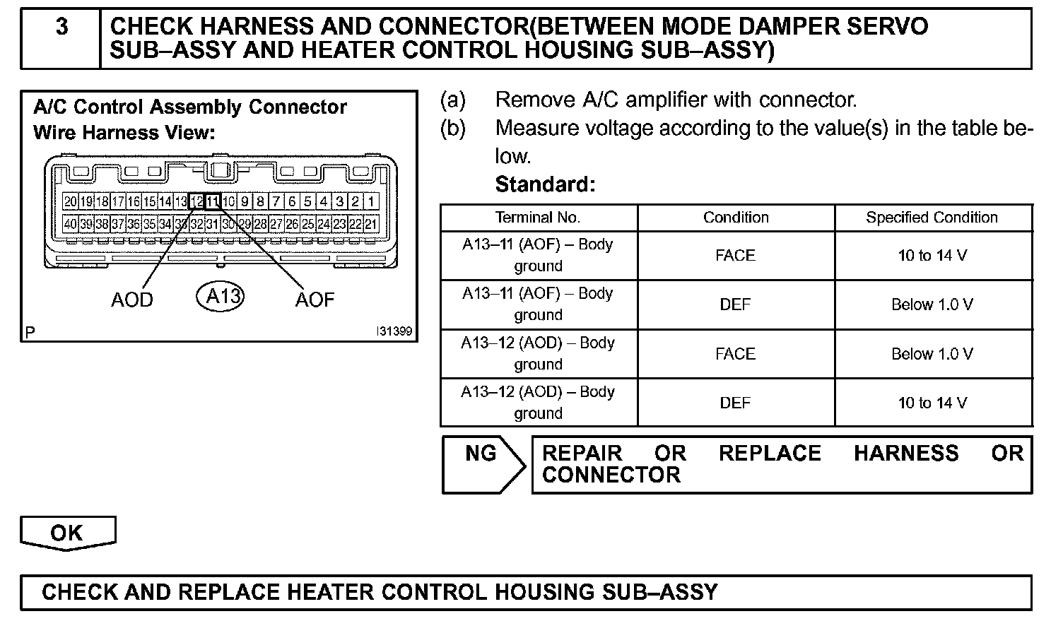 DTC 43 AIR OUTLET DAMPER CONTROL SERVOMOTOR CIRCUIT