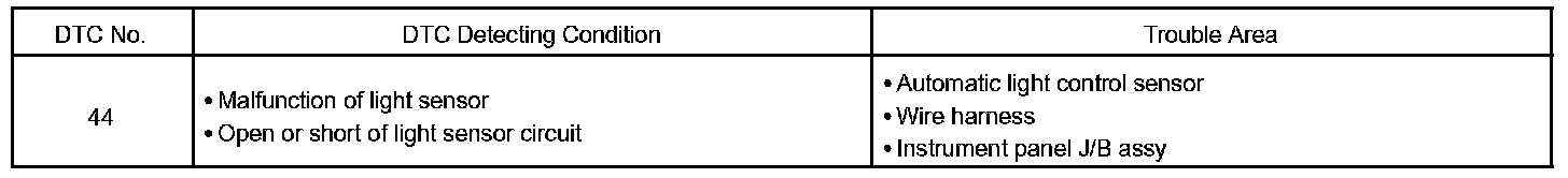 DTC 44 LIGHT SENSOR CIRCUIT MALFUNCTION