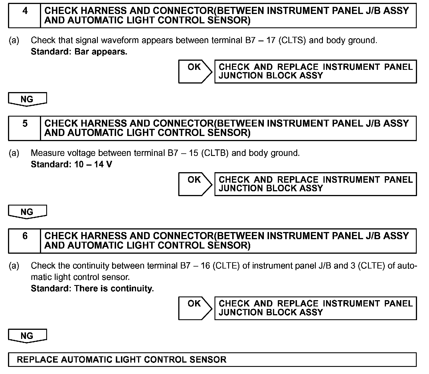 This DTC is output when failure in the light sensor circuit is detected.