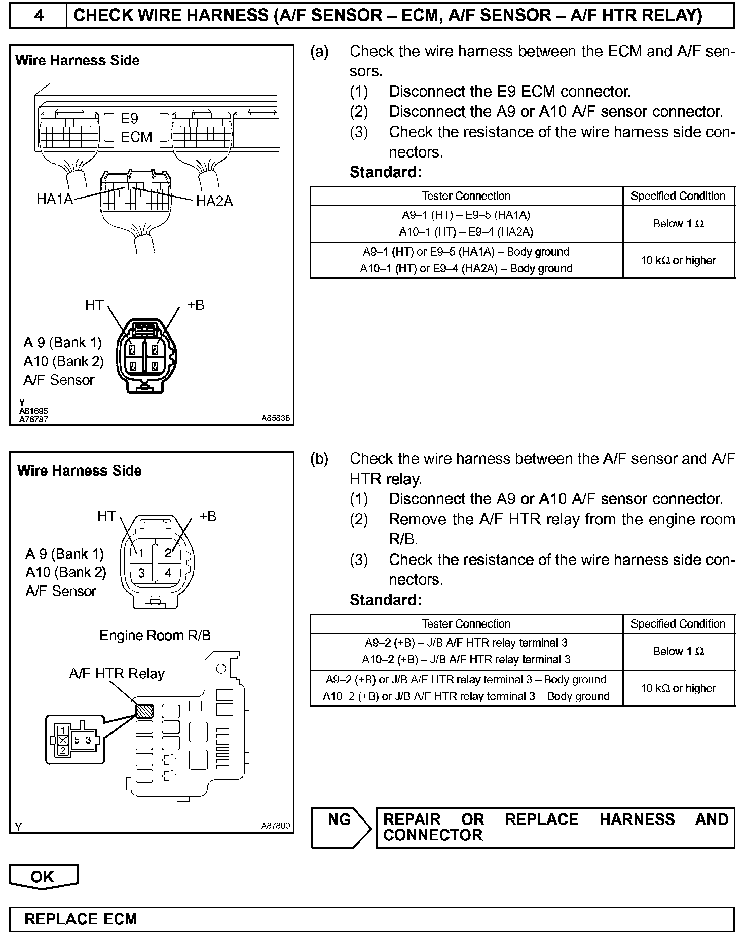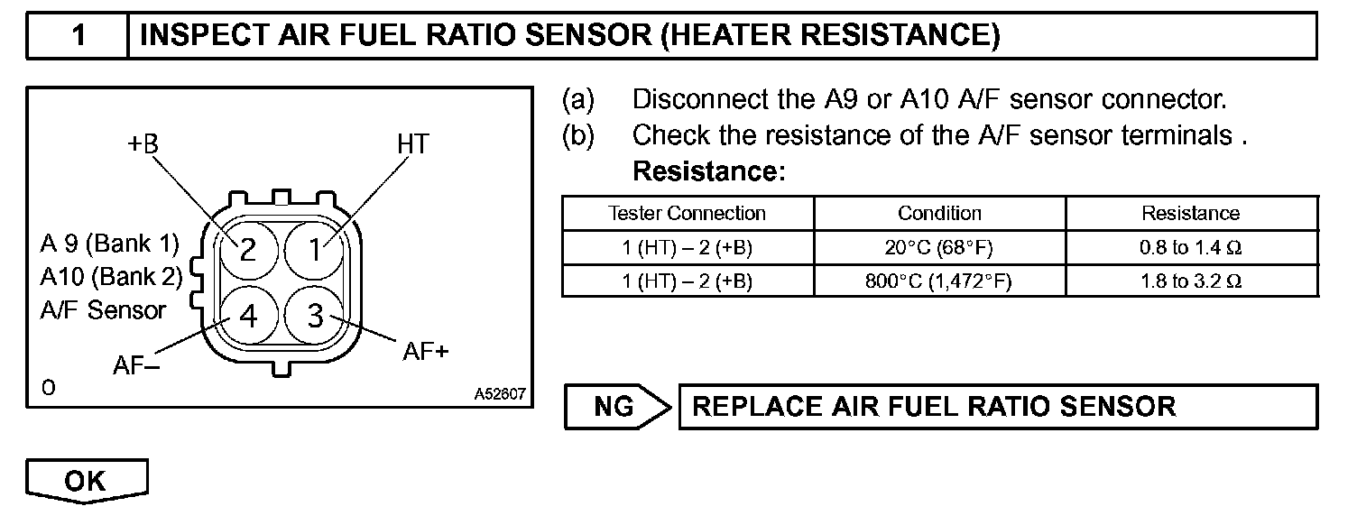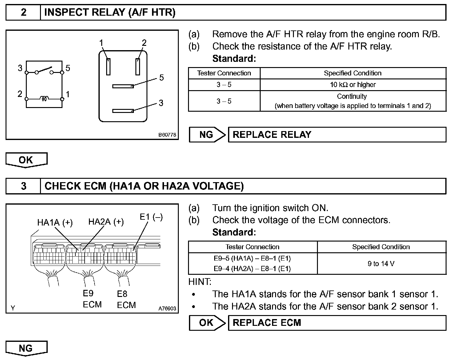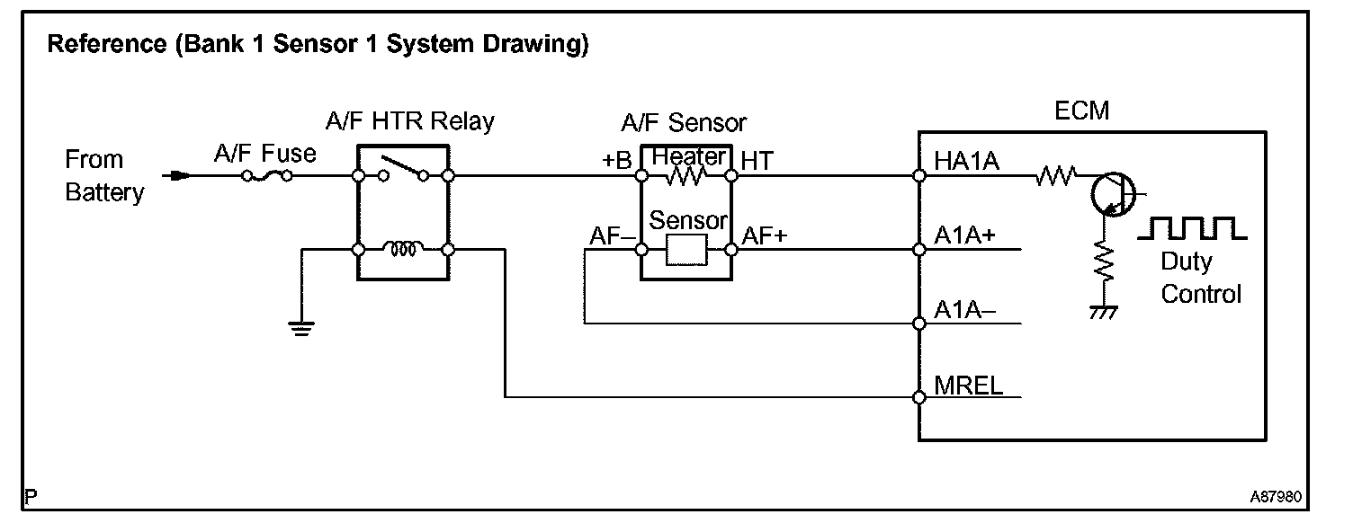 HINT: The ECM provides a pulse width modulated control circuit to adjust current through the heater. The A/F sensor heater circuit uses a relay on the +B side of the circuit.