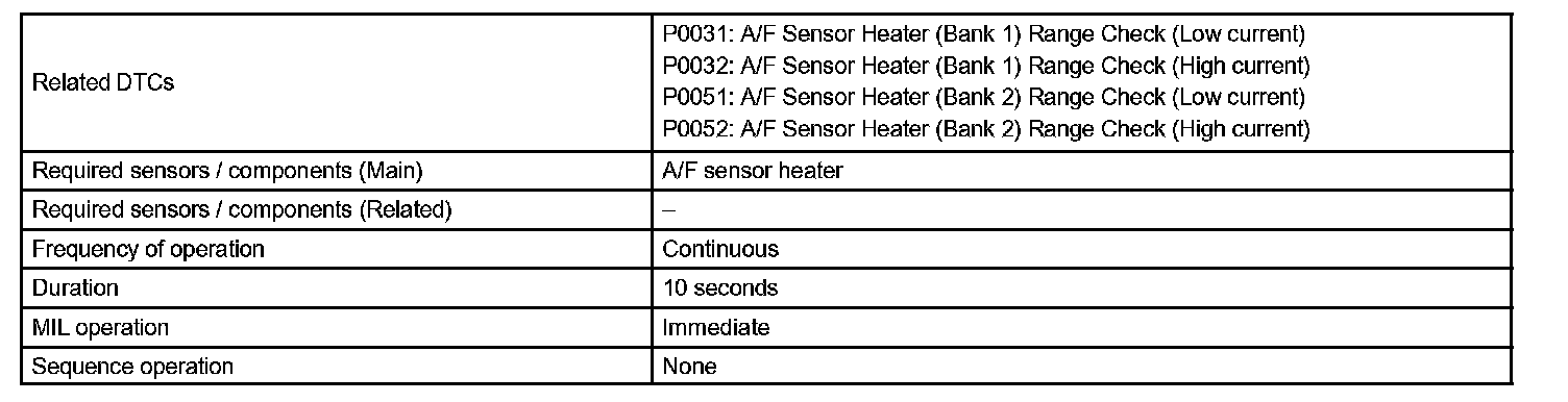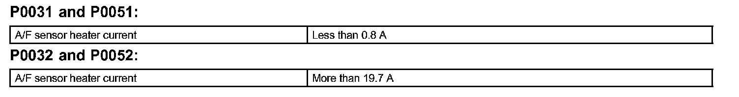 DTC P0032 OXYGEN (A/F) SENSOR HEATER CONTROL CIRCUIT HIGH (BANK 1 SENSOR 1)HINT: Although the caption of detection item (DTC description) says "oxygen sensor", this DTC is related to the "air fuel ratio sensor (A/F sensor)".