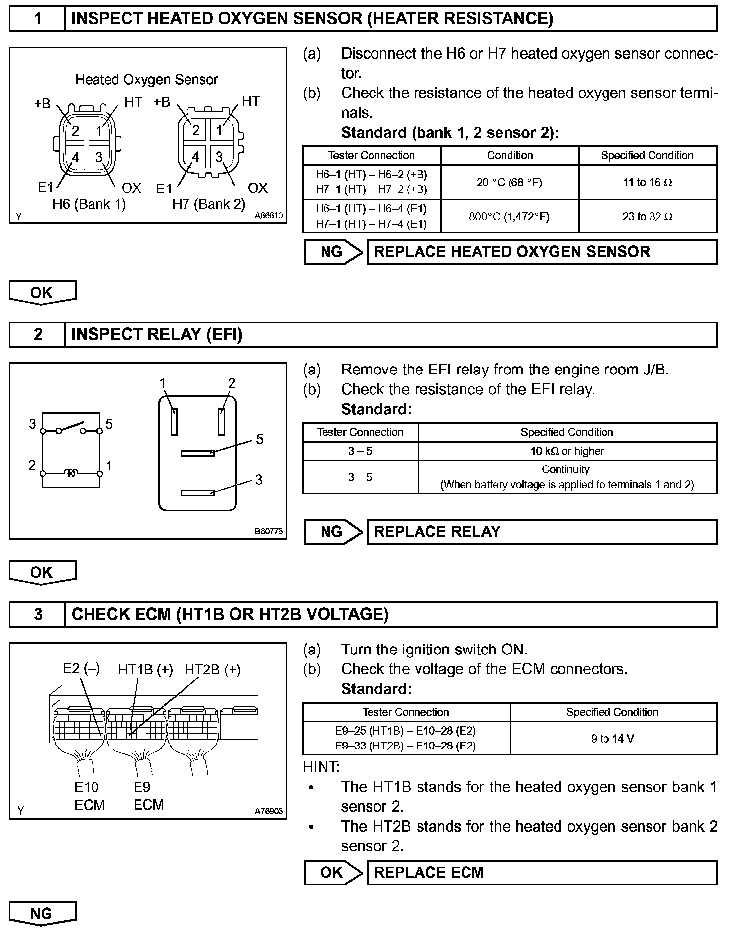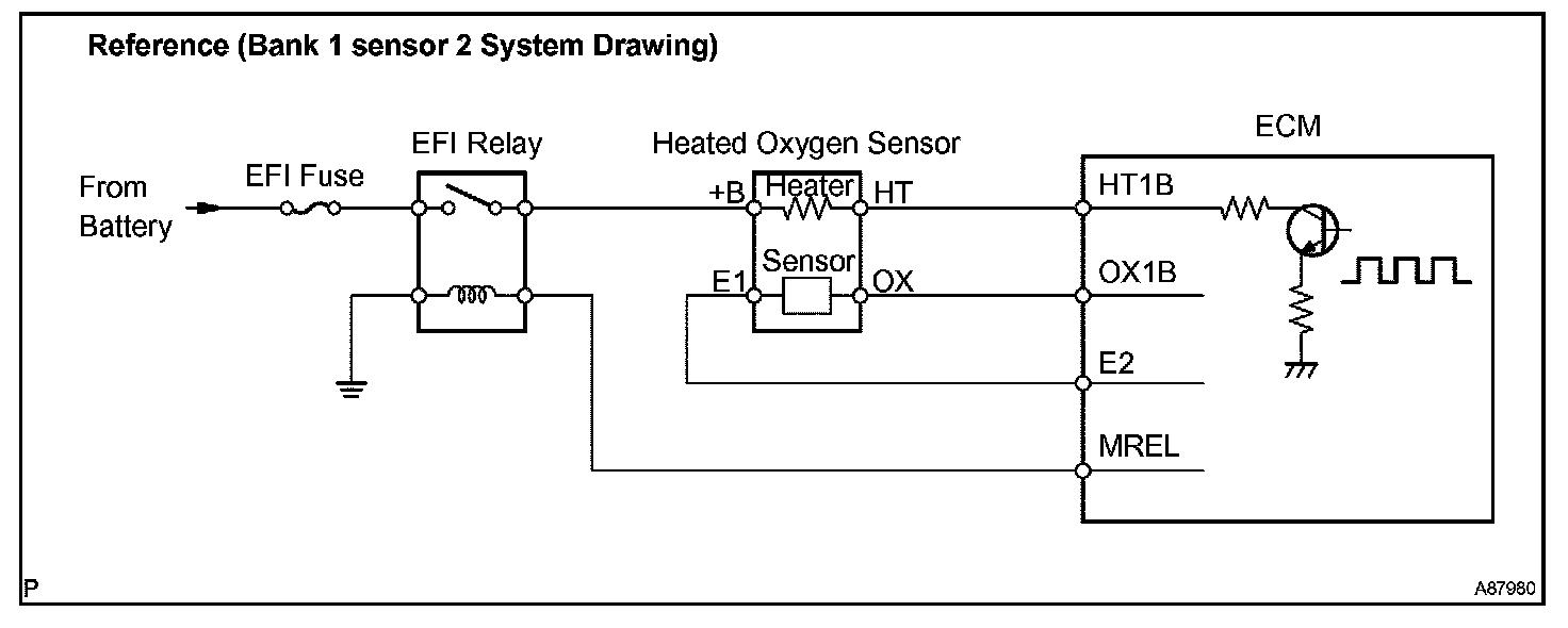 HINT: The ECM provides a pulse width modulated control circuit to adjust current through the heater. The heated oxygen sensor heater circuit uses a relay on the +B side of the circuit.