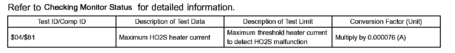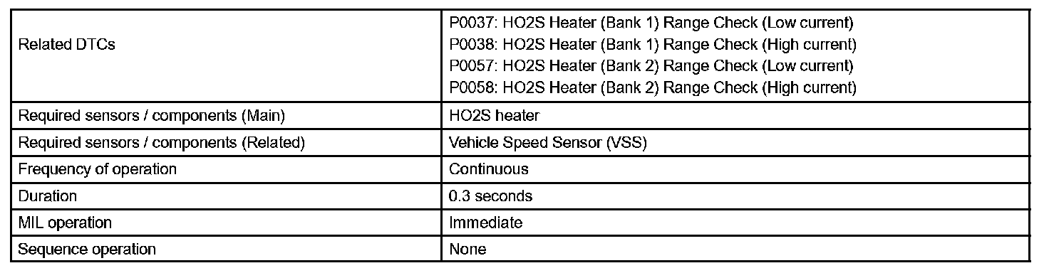 The ECM will set a high current DTC if the current in the sensor is more than 2 A when the heater is OFF. Similarly, the ECM will set a low current DTC if the current is less than 0.25 A when the heater is ON.