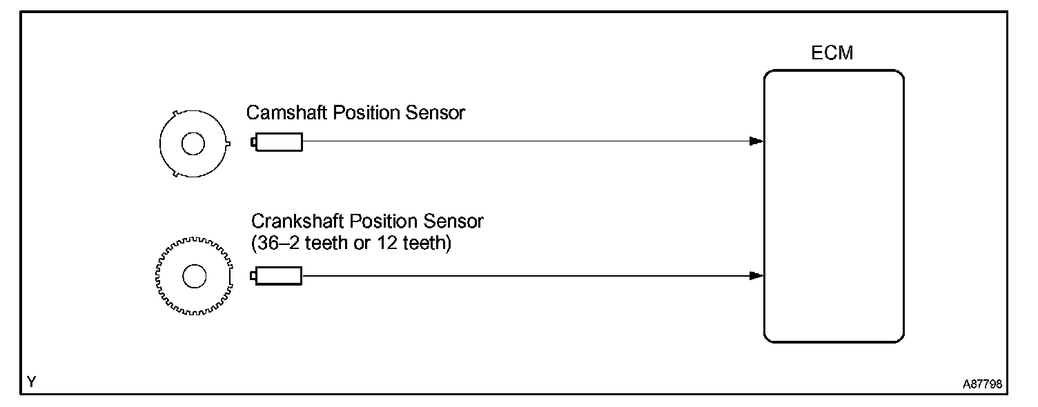 When a misfire occurs in the engine, hydrocarbons (HC) enter the exhaust in high concentrations. If this HC concentration is high enough, there could be an increase in exhaust emissions levels. High concentrations of HC can also cause to temperature of the catalyst to increase, possibly damaging the catalyst. To prevent this increase in emissions and limit the possibility of thermal damage, the ECM monitors the misfire rate. When the temperature of the catalyst reaches a point of thermal degradation, the ECM will blink the MIL. For monitoring misfire, the ECM uses both the camshaft position sensor and the crankshaft position sensor. The camshaft position sensor is used to identify misfiring cylinders and the crankshaft position sensor is used to measure variations in the crankshaft rotation speed. The misfire counter increments when crankshaft rotation speed variations exceed threshold values.