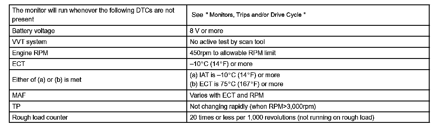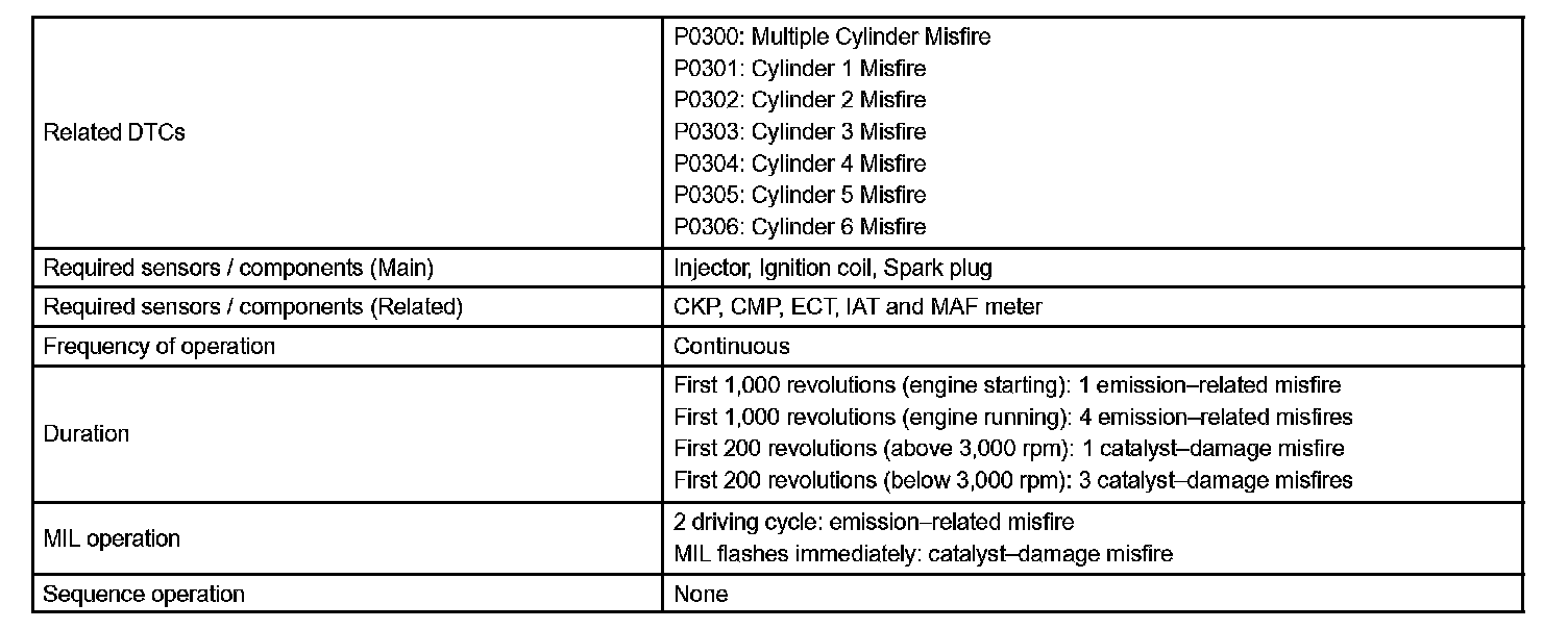 - After the first 1,000 engine revolutions after the engine starts, an excessive misfire rate (approximately 20 to 50 misfire per 1,000 engine revolutions) occurs 4 times.