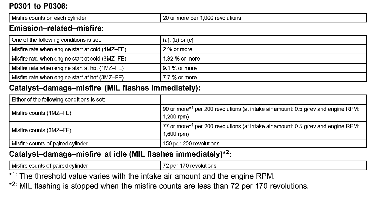 - During the first 1,000 engine revolutions after the engine starts, an excessive misfire rate (approximately 20 to 50 misfire per 1,000 engine revolutions) occurs 1 time.