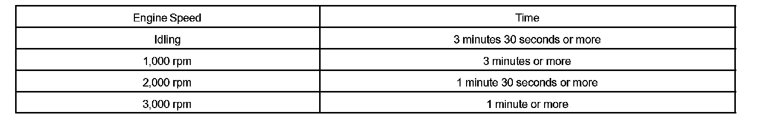 HINT: In order to memorize the misfire DTC, it is necessary to drive with MISFIRE RPM, MISFIRE LOAD in the DATA LIST for the period of time in the chart. Take care not to turn the ignition switch OFF. Turning the ignition switch OFF switches the diagnosis system from check mode to normal mode and all DTCs, freeze frame data and other data are erased.