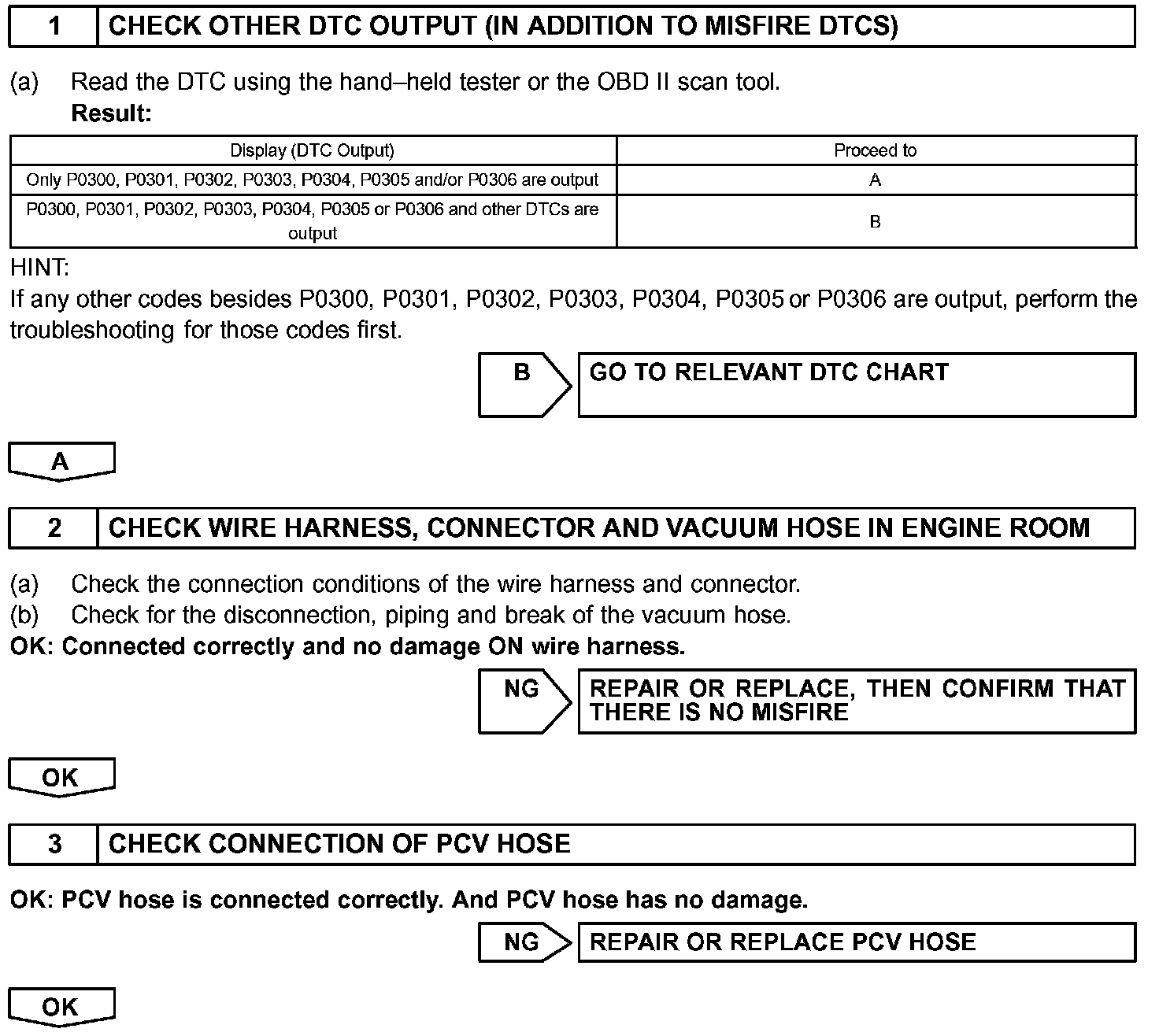 - If DTCs besides misfire DTCs are memorized simultaneously, troubleshoot the non-misfire DTCs first.