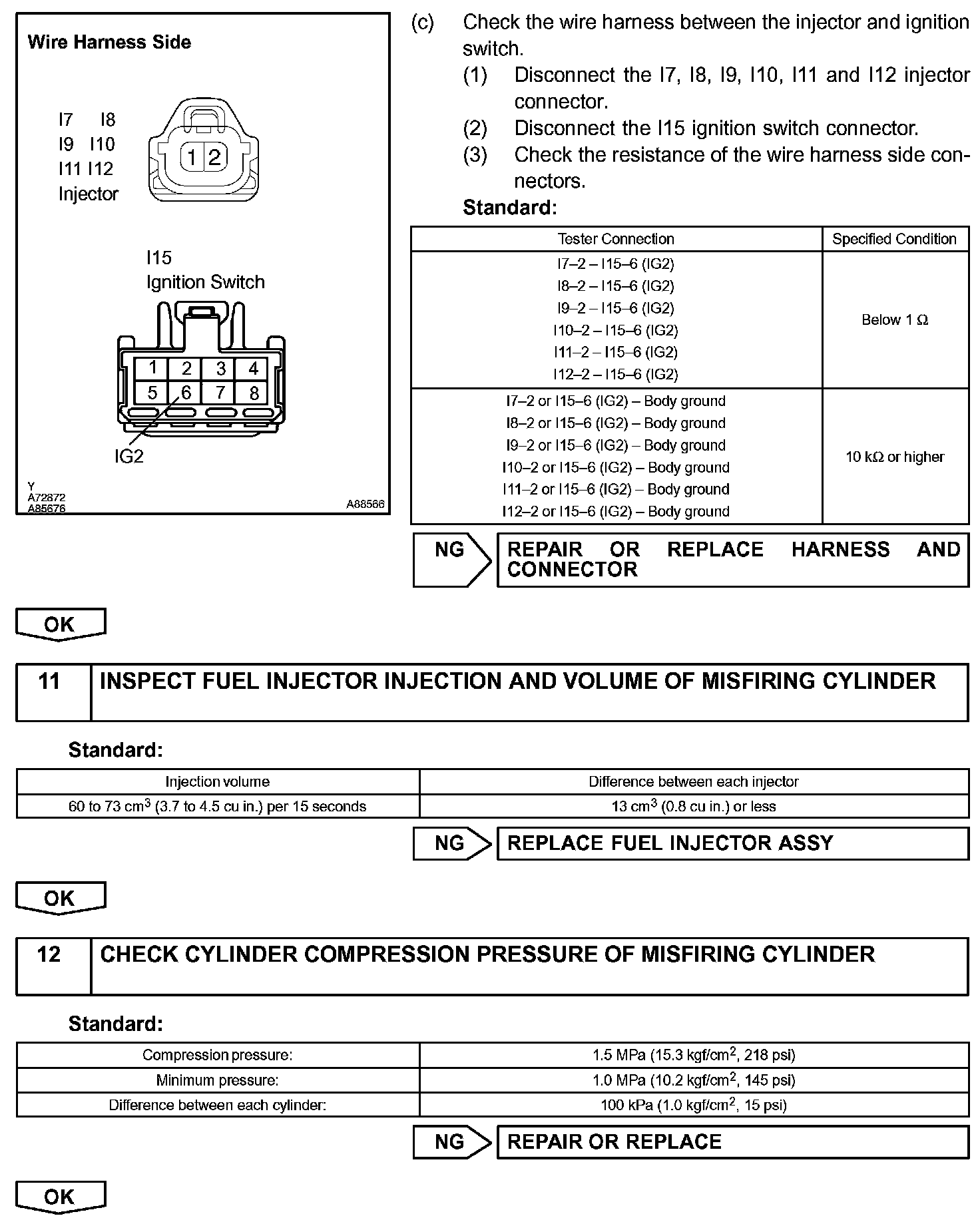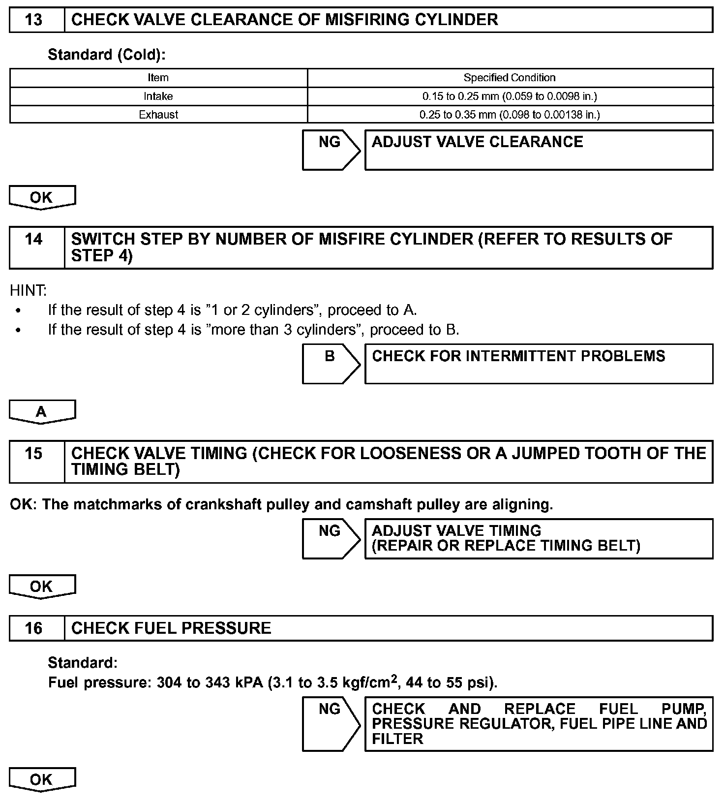 - If the misfire cannot be reproduced, the following reasons may apply: 1) the vehicle has low fuel, 2) improper fuel is being used, and 3) the ignition plug is contaminated.