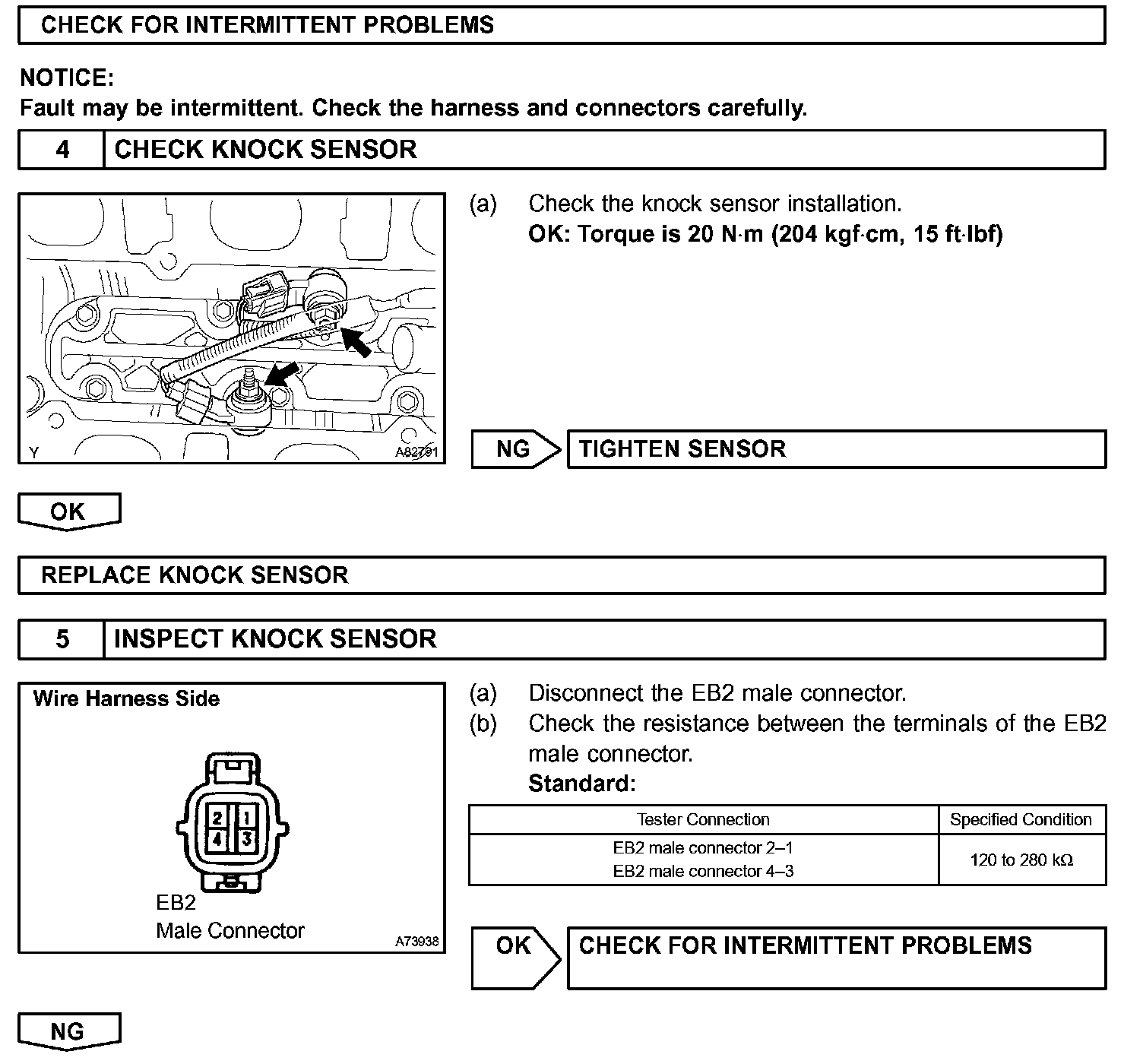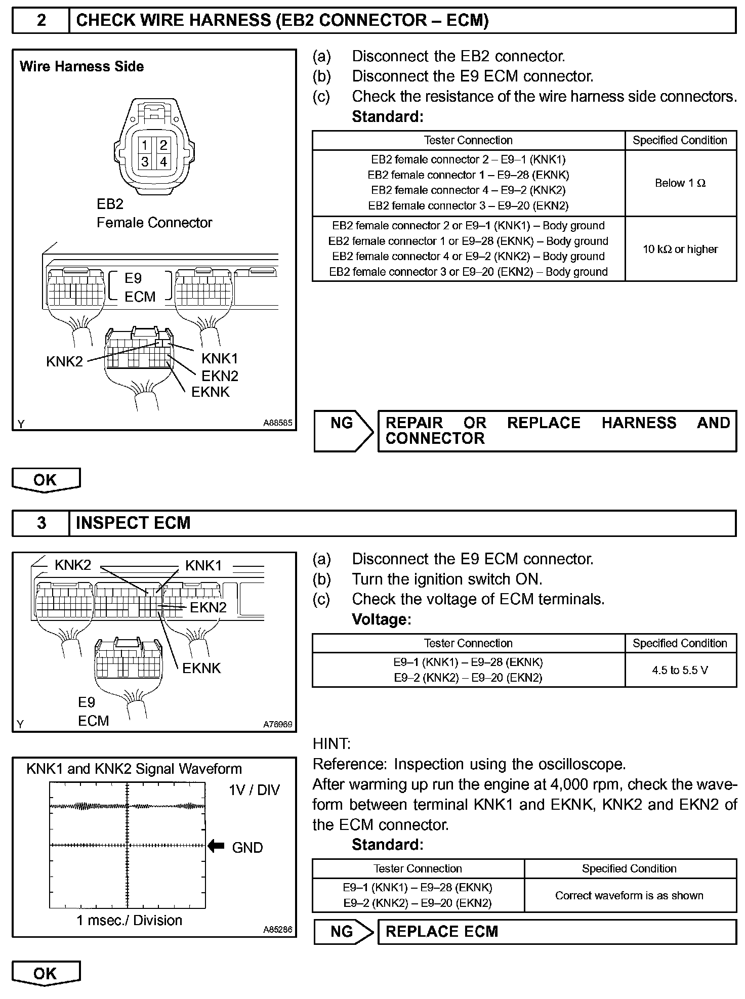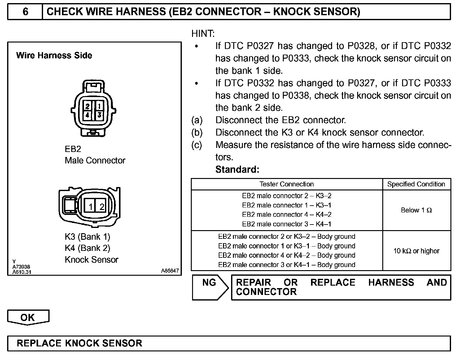 DTC P0332 KNOCK SENSOR 2 CIRCUIT LOW INPUT (BANK 2)*: Only for 3MZ-FE