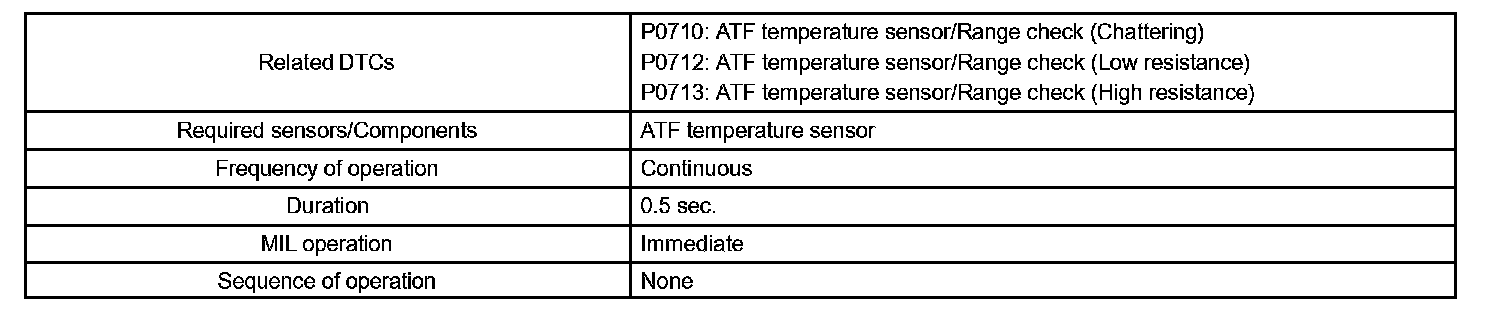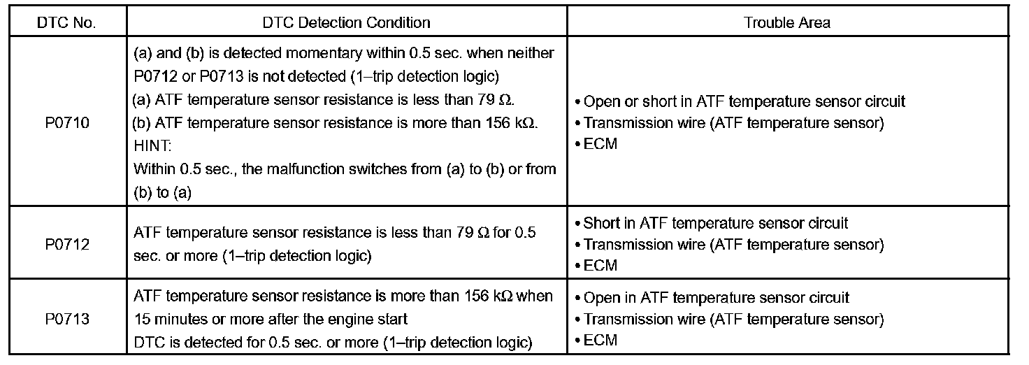 DTC P0710 TRANSMISSION FLUID TEMPERATURE SENSOR "A" CIRCUITCIRCUIT DESCRIPTION