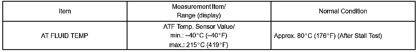 *2: -40 °C (-40 °F) is indicated regardless of the actual ATF temperature.