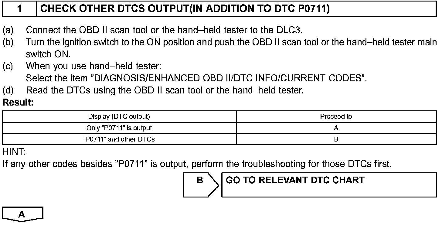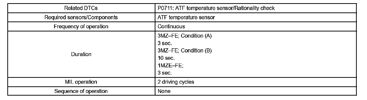 HINT: If a circuit related to the ATF temperature sensor becomes open, P0713 is immediately set (in 0.5 second).