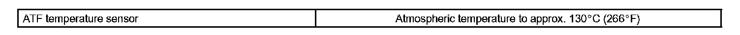 The ATF temperature sensor converts the ATF temperature to an electrical resistance value. Based on the resistance, the ECM determines the ATF temperature and detects an opens or shorts in the ATF temperature circuit or a fault of the ATF temperature sensor.