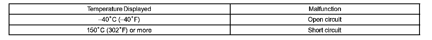HINT: When DTC P0712 is output and OBD II scan tool or hand-held tester output is 150 °C (302 °F), there is a short circuit.