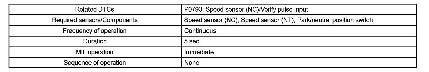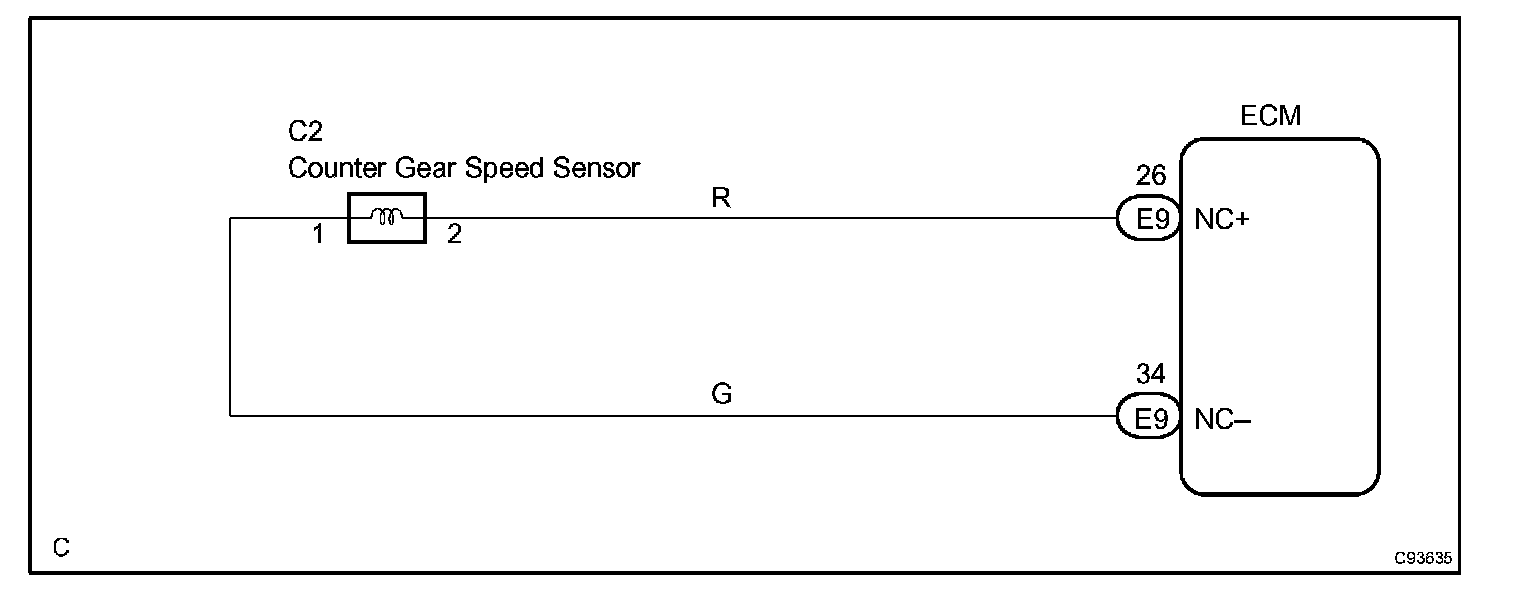 The NC terminal of ECM detects the revolving signal from speed sensor (NC) (output rpm). The ECM outputs a gearshift signal comparing the speed sensor (NT) with the speed sensor (NC).