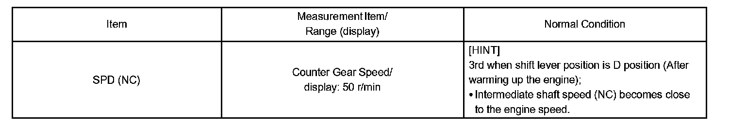 - SPD (NC) is always more than 0 and less than 300 rpm while driving the vehicle at 50 km/h (31 mph) or more: