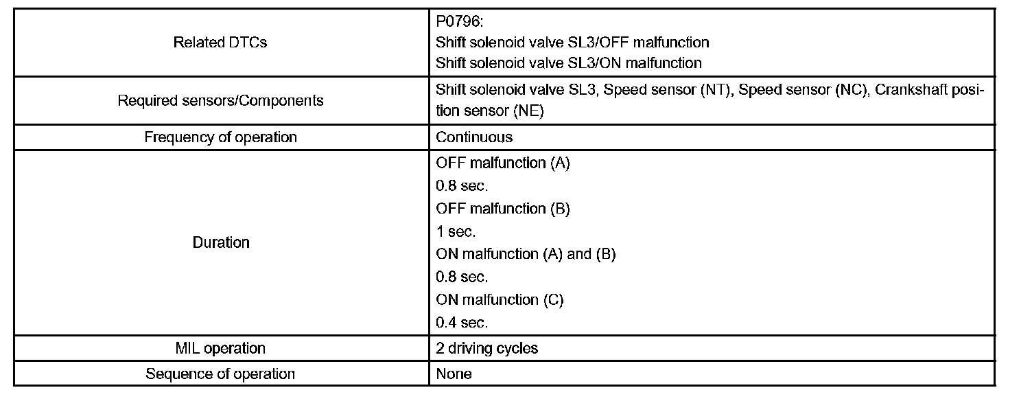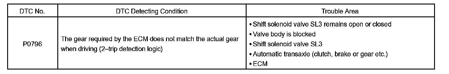 DTC P0796 PRESSURE CONTROL SOLENOID "C" PERFORMANCE (SHIFT SOLENOID VALVE SL3)SYSTEM DESCRIPTION