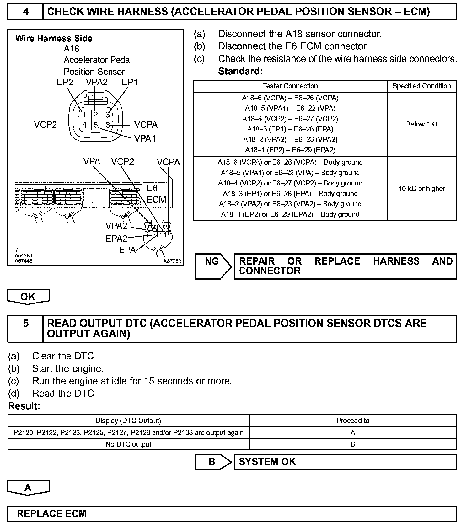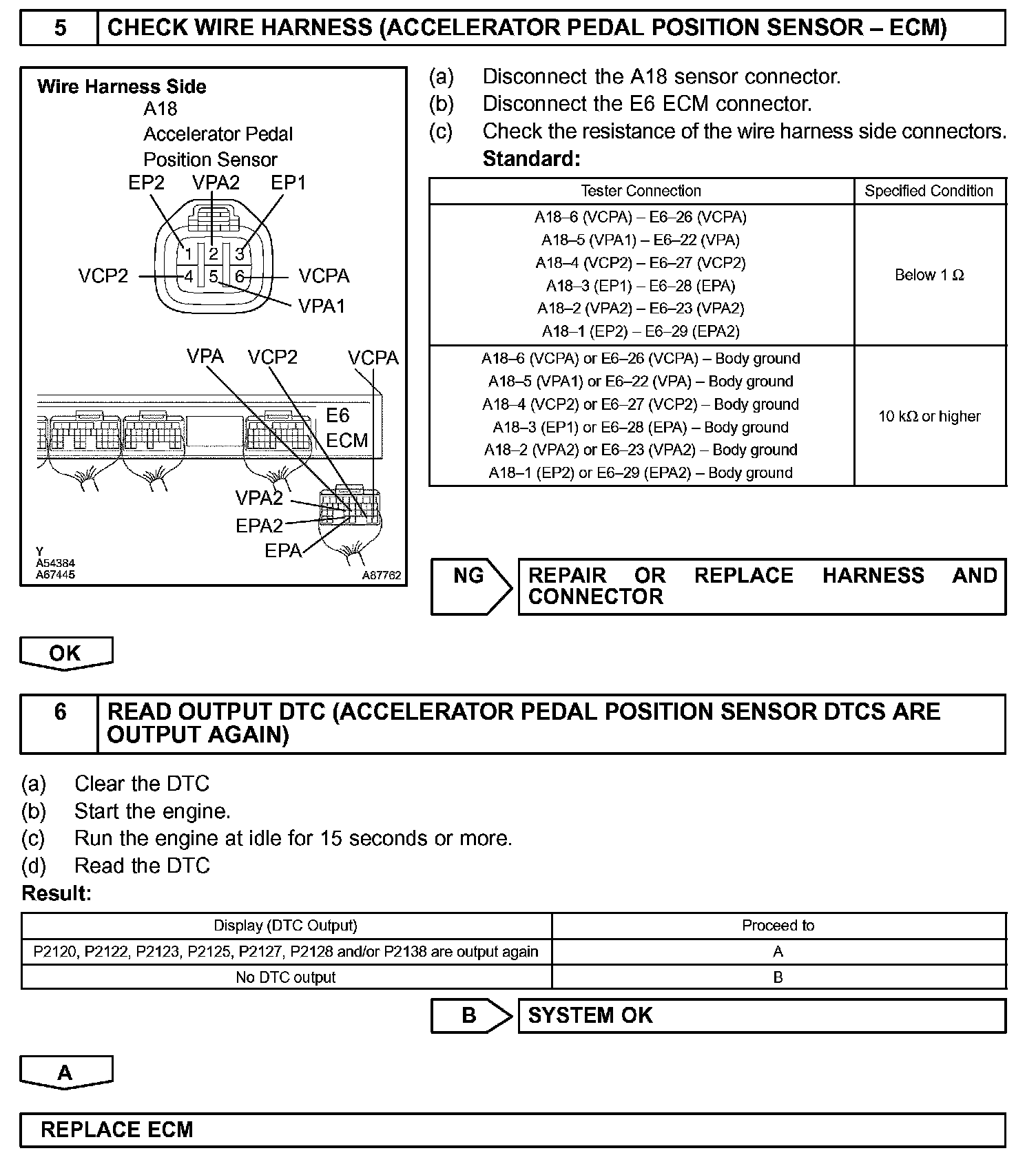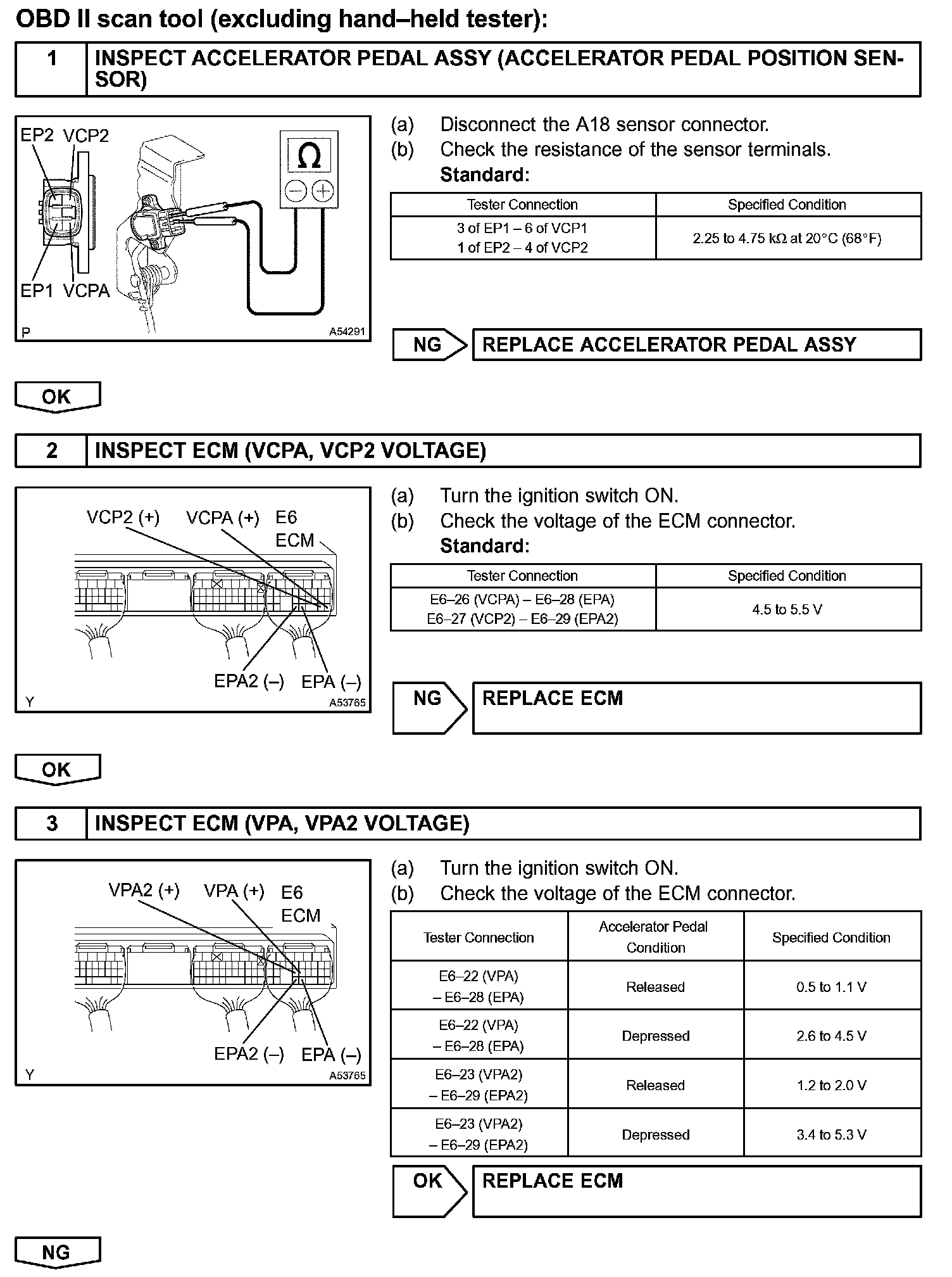 HINT: After confirming DTC P2120, P2122, P2123, P2125, P2127, P2128 and P2138, use the hand-held tester or the OBD II scan tool to confirm the accelerator pedal position sensor output voltage.